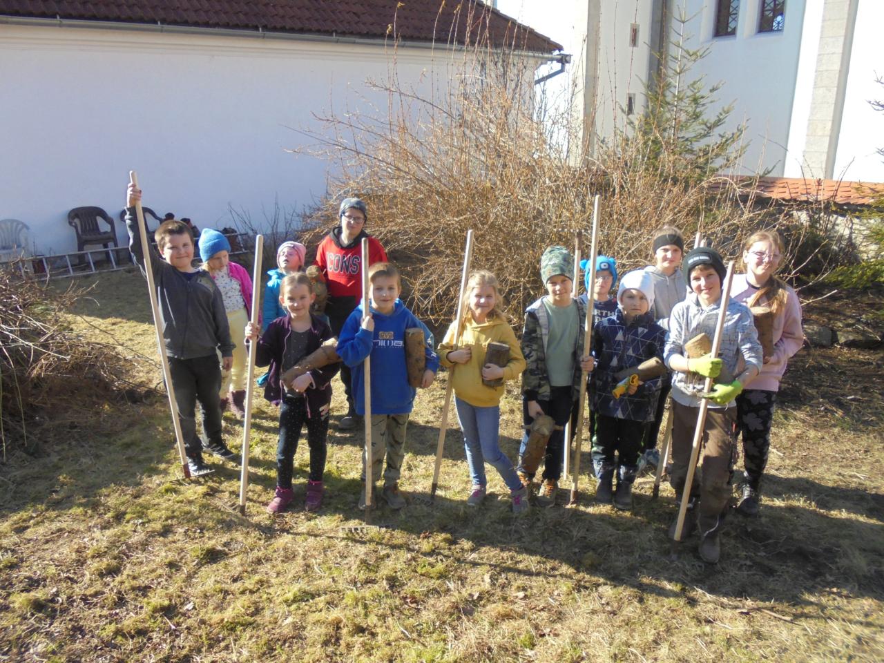 úklid farské zahrady, 1.-5. ročník