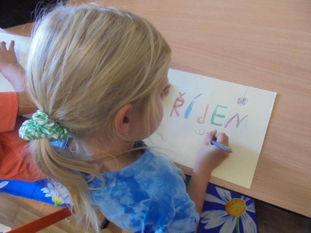 Říjen byl nabitý akcemi - kreslilo se, vyrábělo, děti si hrály venku, zúčastnily se besedy o indiánech s ukázkou hry na indiánskou flétnu kmene Navarů...