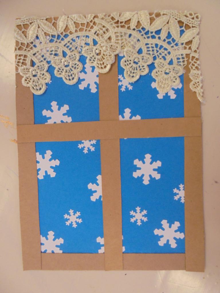 zimní okno, práce se šablonou,5.ročník