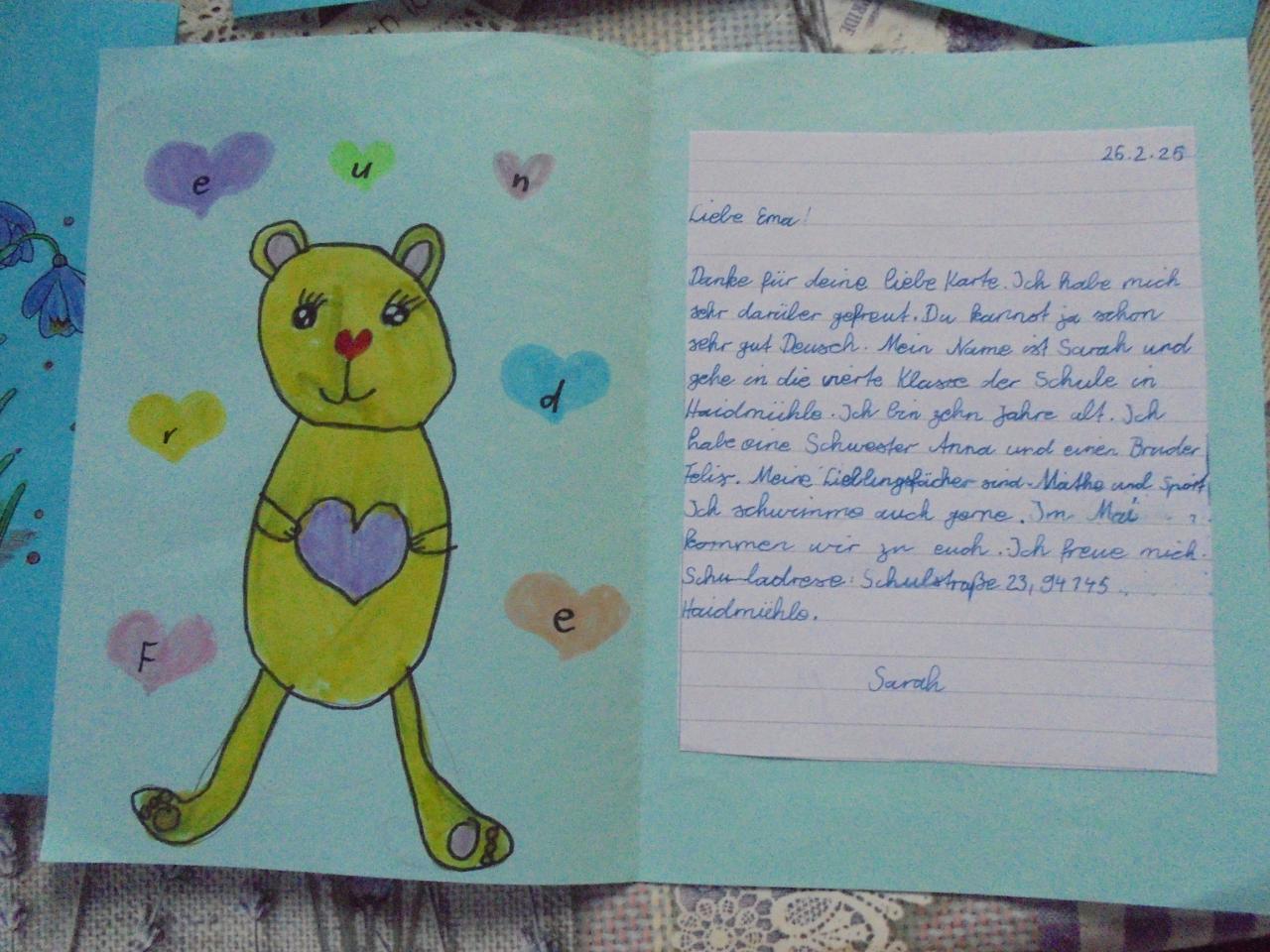 Ich schreibe dir einen Brief. - ČJ/NJ projekt Freundschaft ohne Grenzen, dopisy od německých kamarádů, 4. a 5. ročník