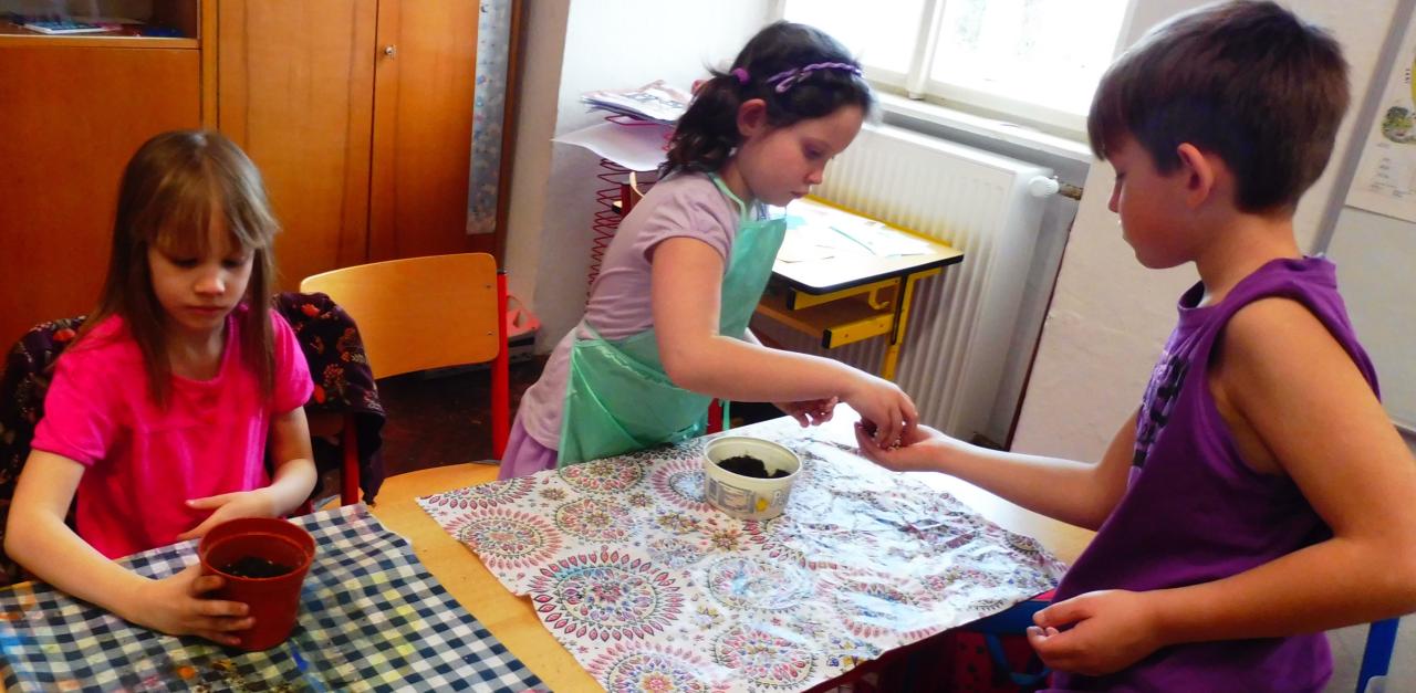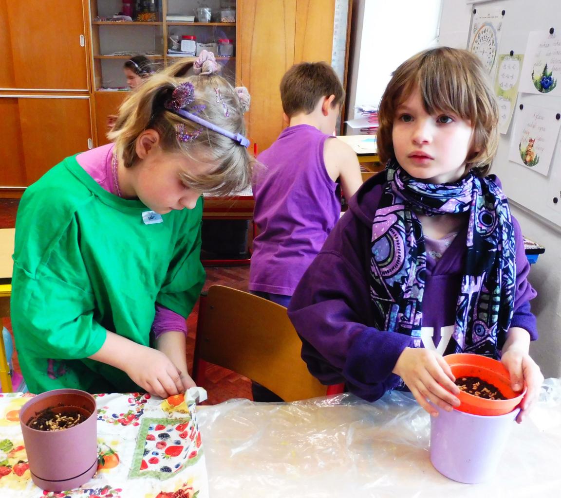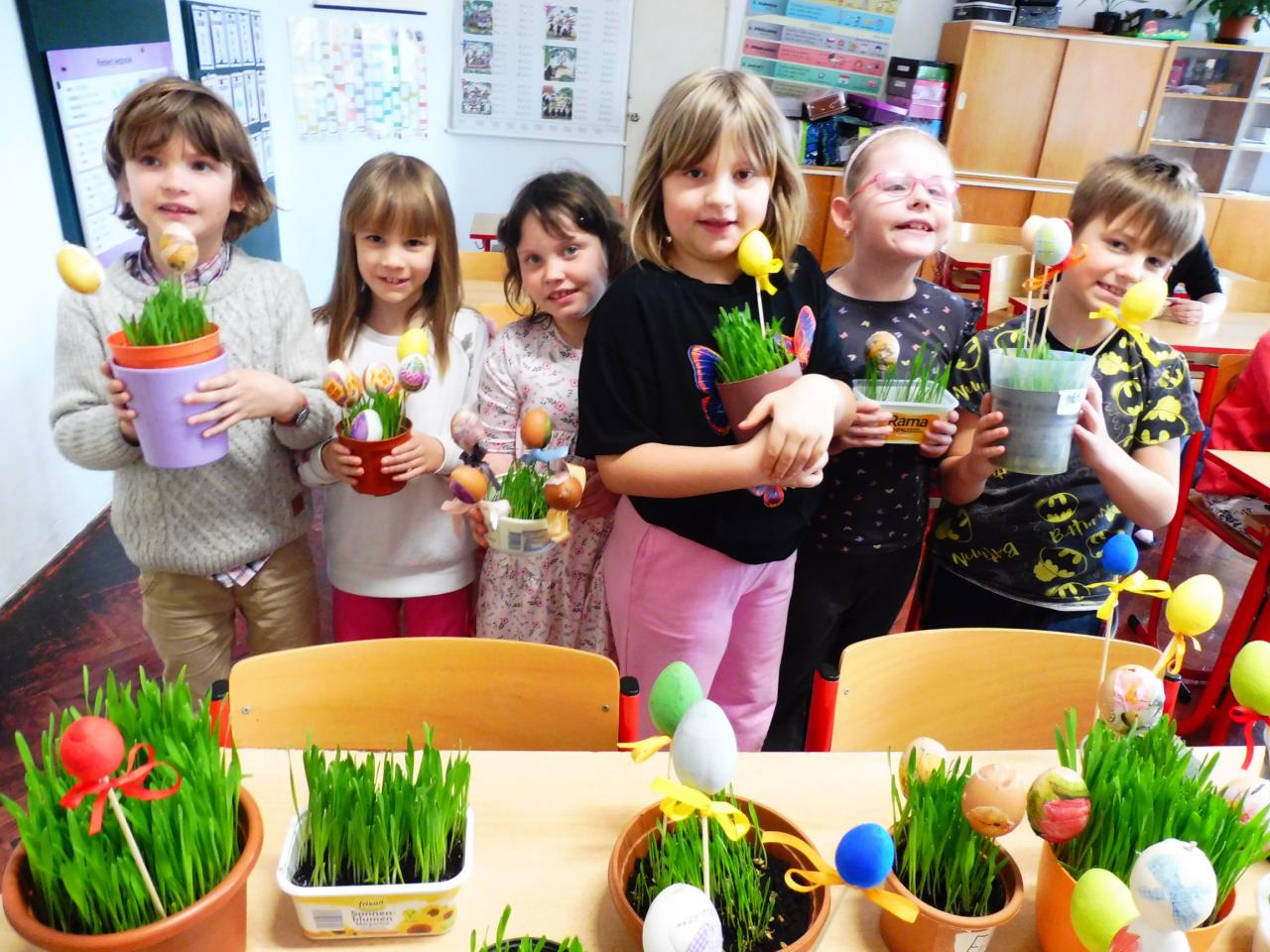 Také v hodinách pracovních činností jsme se věnovali velikonoční výzdobě - děti zasely do misek obilí, které během několika dnů krásně vyrostlo a doplnily misky krásně nazdobenými velikonočními vajíčky :-)